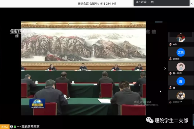 4月23日上午,员工第二党支部通过线上视频会议的形式组织观看了关于“习近平总书记扶贫工作论述精神”的视频。参加本次视频会议的有教师党员2名(包文明、罗婵),员工党员7名(张惠、秦渊、段东伟、朱明亮、徐文策、庄晓旭、李科曼),预备党员5名(盖鹏祥、刘博文、宿淑晶、梁斌、何鑫鑫),大家积极响应号召,准时参加会议。