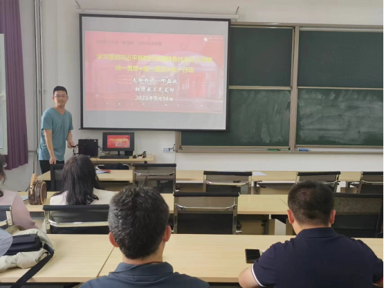 2023年9月14日下午,物理教工党支部书记邓磊波在明德楼E307为物理教工党员作了题为“学习贯彻习近平新时代中国特色社会主义思想 ——统一思想、统一意志、统一行动”的党课,支部全体党员参加了本次党课学习。