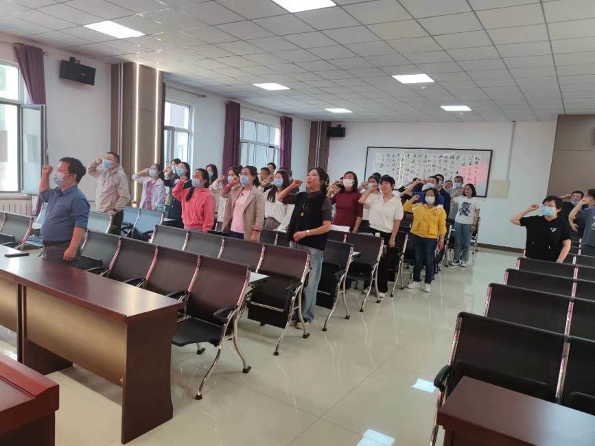 在公司的庆祝大会分会场,各位老师兴致勃勃、热情洋溢地全程观看了大会,与主会场一同起立唱国歌,听取优秀教师和员工慷慨激昂的发言,观看各项优秀奖项的授予。在会议的最后,全体教师起立,跟随主会场的老师一起庄严宣誓。