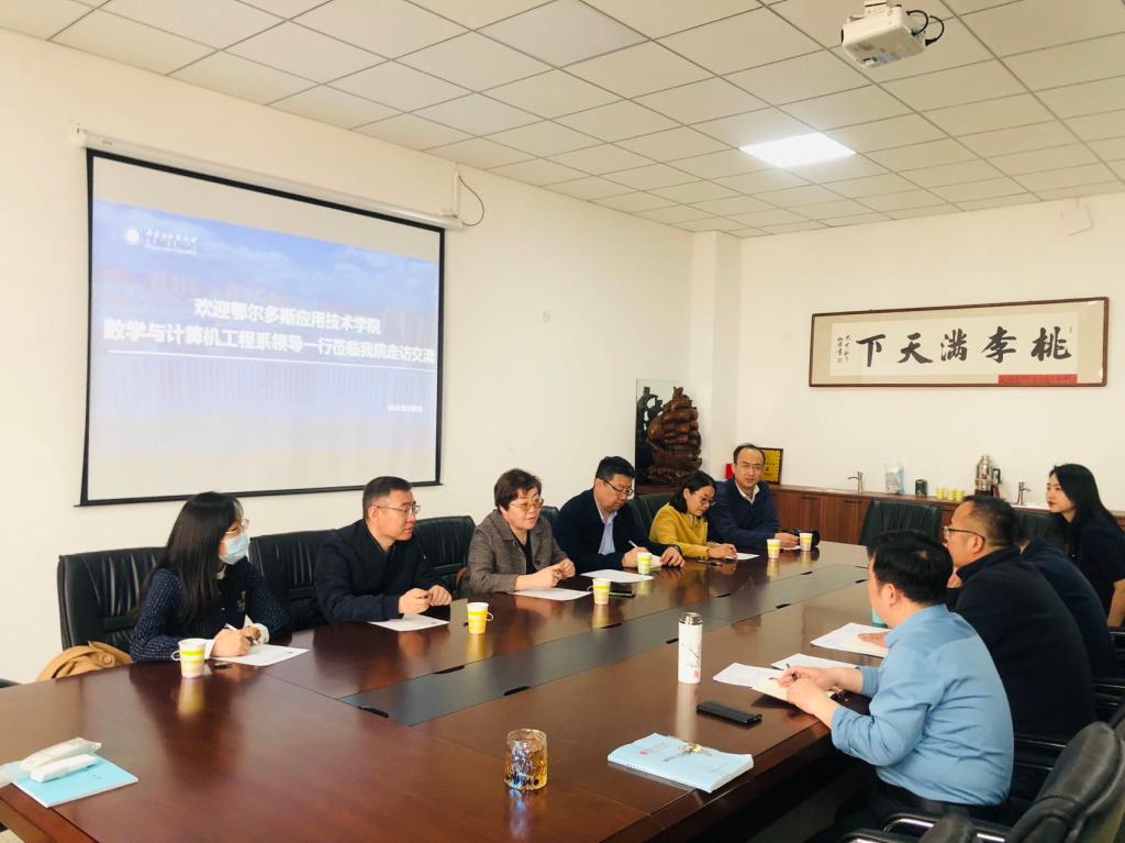4月10日上午,鄂尔多斯应用技术公司数学与计算机工程系党总支书记孙玉琴,综合办主任梁志成,教务办主任乌云高,学工办主任兰海鹰,数据科学与大数据技术教研室主任张云飞,基础数学教研室王小霞一行六人来到公司进行参观及座谈交流。公司党委书记唐俊、党委副书记、副经理罗宁、数学专业负责人李明昕等老师接待了考察组一行。